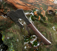 Топорик ЦМ №2 из кованой нержавеющей стали 95х18 с травлением, рукоять - венге, кожаный чехол в комплекте.