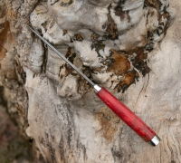 Нож Олимп из дамасской стали, рукоять - стабилизированная карельская береза, кожаный чехол в комплекте.