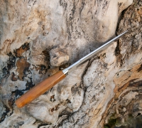 Нож Гефест из порошковой нержавеющей стали М390, рукоять - стабилизированная карельская береза, кожаный чехол в комплекте.