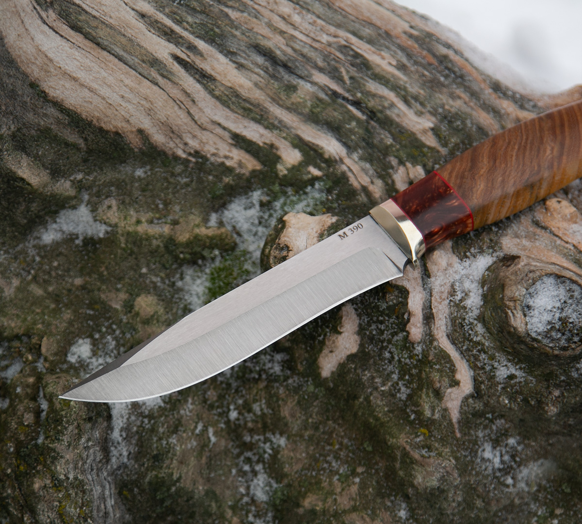 Нож Скандинав из порошковой нержавеющей стали М-390, рукоять - стабилизированный ясень + акрил, кожаный чехол идет в комплекте.