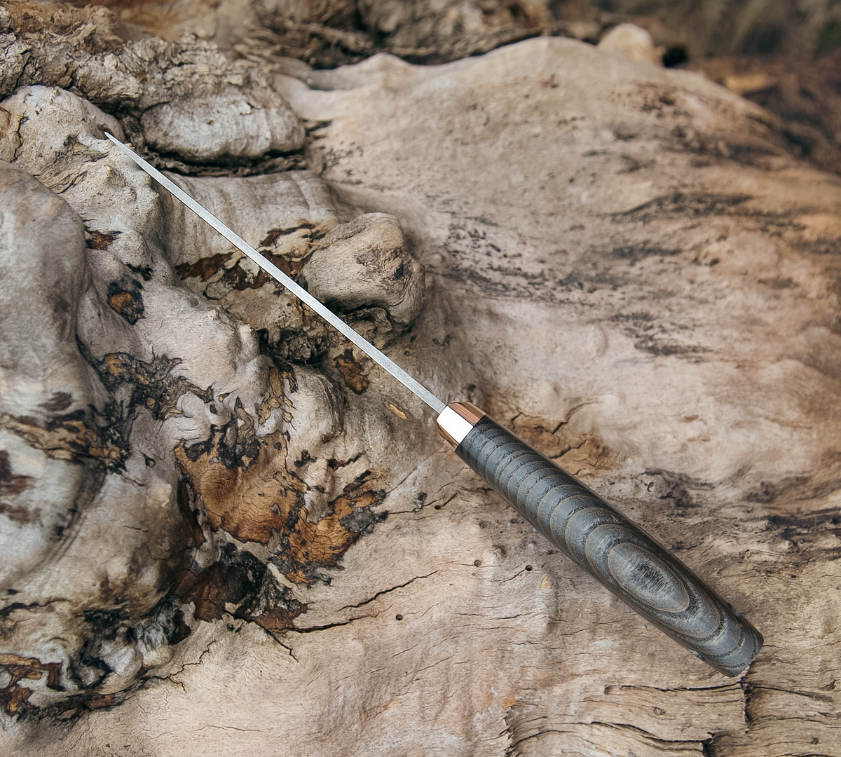 Нож Клыч из порошковой нержавеющей стали М-398, рукоять - стабилизированный дальневосточный ясень, кожаный чехол в комплекте.